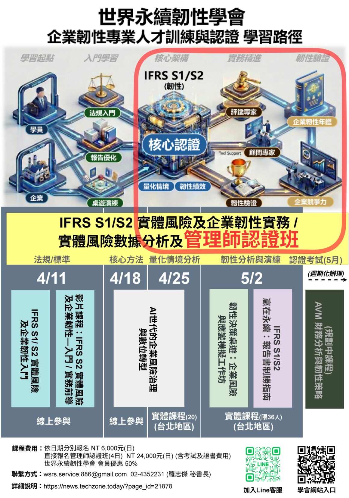 學員定位:撰擬永續報告書/TCFD報告人員、實體風險管理分析人員、設施安全防護計畫主責人員